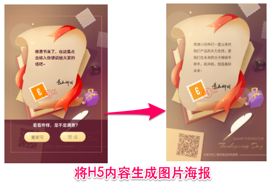 有了“截屏”组件,就可以将H5页面内容合成图片,用于: